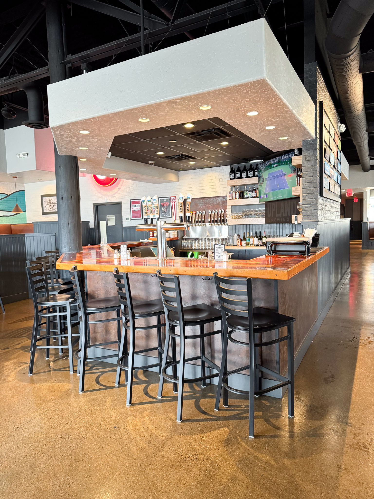 Upland is proud to serve the community in Castleton and around the Fashion Mall at Keystone. With tons of shopping and recreation nearby, Upland 82nd Street is versatile. Whether you’re planning a private dinner, a business meeting or lunch, or a lively happy hour, our venue boasts large windows that flood the space with natural light, creating a warm and inviting atmosphere for any occasion. Book your event with us today and enjoy a unique setting paired with our renowned craft brews!